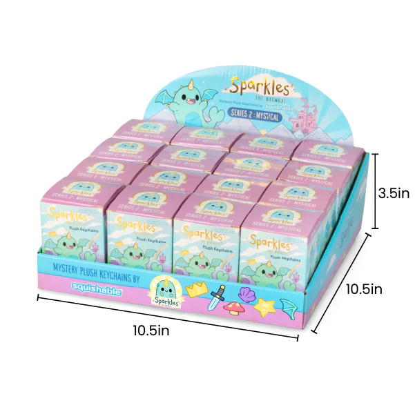 Sparkles the Narwhal is back for round 2! Our favorite unicorn-adjacent-but-actually-real-whale has somehow stumbled into a mystical world of magic and stuff. This is definitely cool - Sparkles hasn't ever actually played D&D but has always meant to. Now he just needs to pick a class - perhaps a knight? A sea-dwelling mer-folk? Or just lean in and go full unicorn? The choices!! Besides being a recently-magical narwhal, Sparkles is also a tiny plush friend that's hiding in a box! Each Sparkles Blind Box contains 1 mystery plush keychain out of 6, ready to accompany you on your next big adventure (preferably on a grand quest to get coffee). Easily clasped to your bag, keys, pencil case, zipper, or whatever. Sparkles ain't the picky type! The Sparkles style you get is totally RANDOM! One Sparkles plush comes per box, and there's no guarantee you'll get any one particular 'whal!